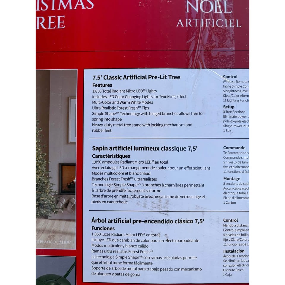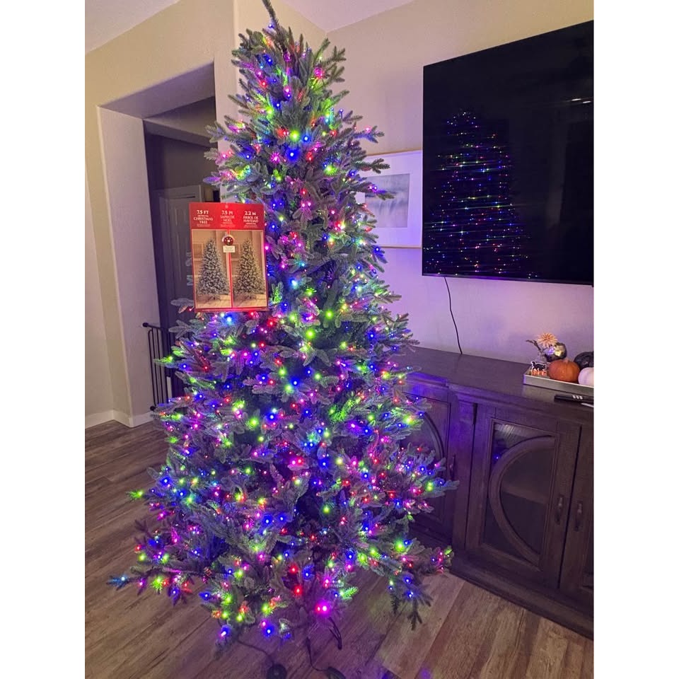 The 7.5ft Pre-Lit Aspen Artificial Christmas Tree is a stunning addition to any holiday decor. Featuring 1,850 color-changing Radiant Micro LED® lights with twinkling effects, this pre-lit tree creates a festive glow throughout your home. With EZ Connect Technology, the pole-to-pole lighting ensures seamless setup, while the 4,795 Simple Shape memory wire branch tips spring into shape instantly for a full appearance. The sturdy metal tree stand with a locking mechanism provides a stable foundation and the included wireless remote control lets you select from 11 different twinkling light effects to set the perfect mood. Elevate your Christmas celebration with this enchanting 7.5ft Pre-Lit Aspen Artificial Christmas Tree.
